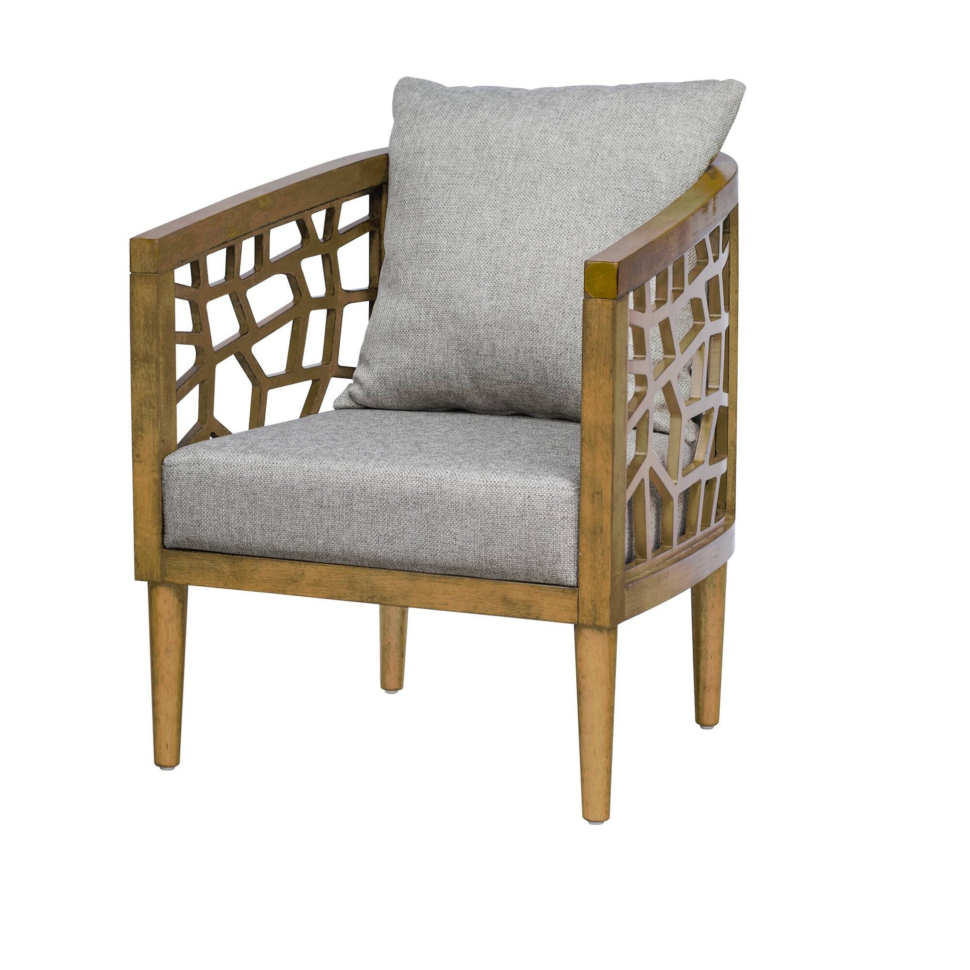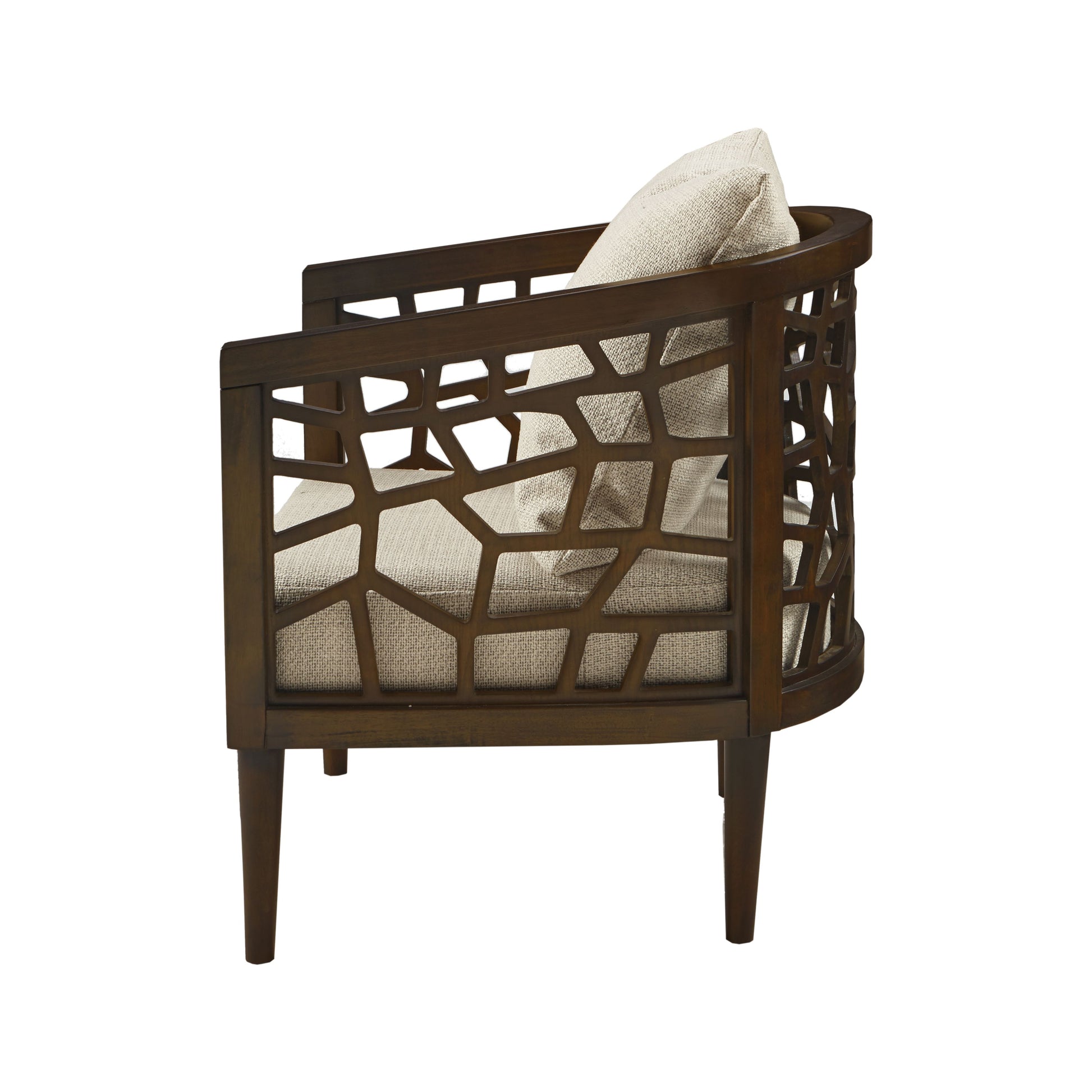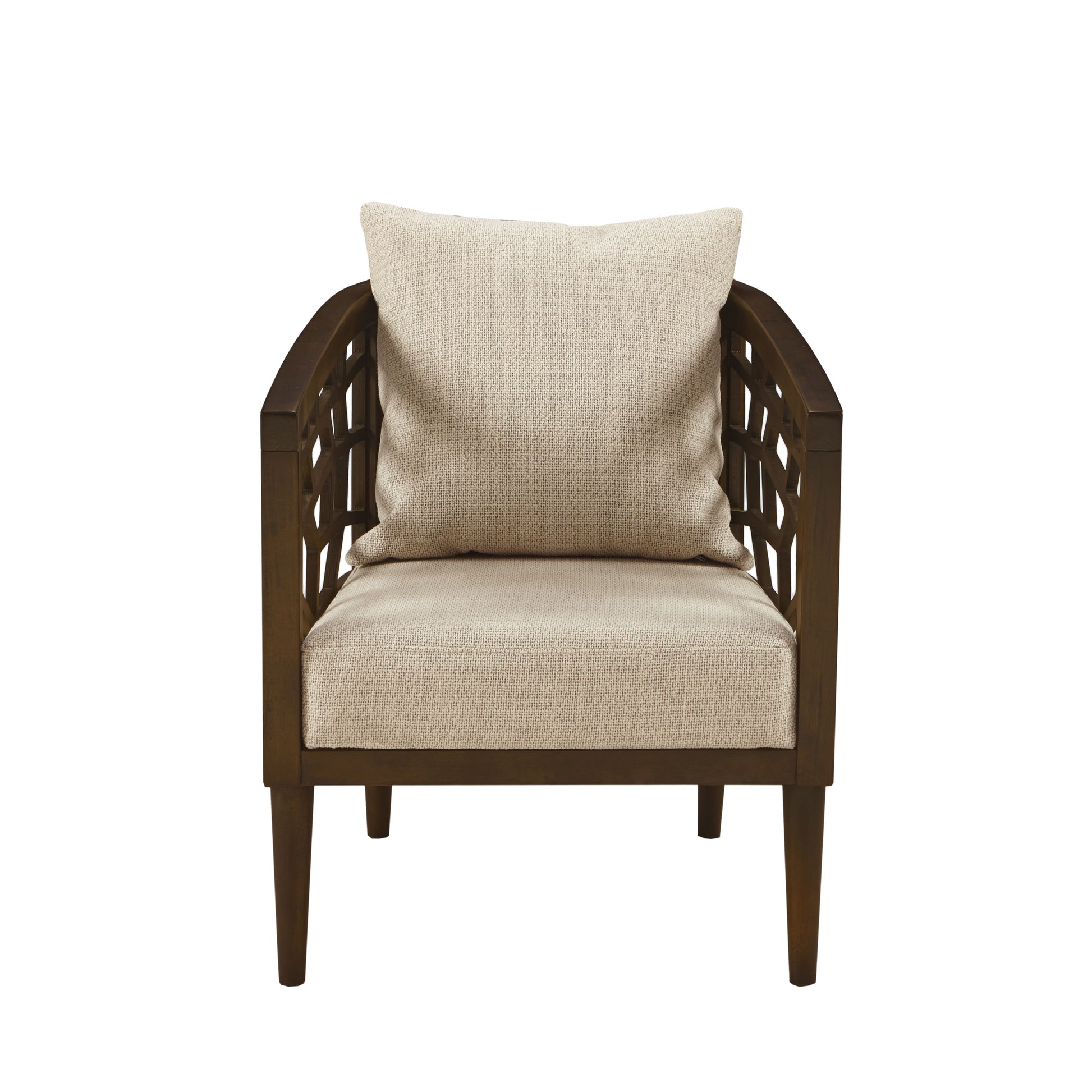 Dress up your decor with mid-century style of the INK+IVY Crackle Accent Chair. Highlighted in a dark burnt walnut finish, this accent chair features natural hued upholstery that creates a stunning contrast.