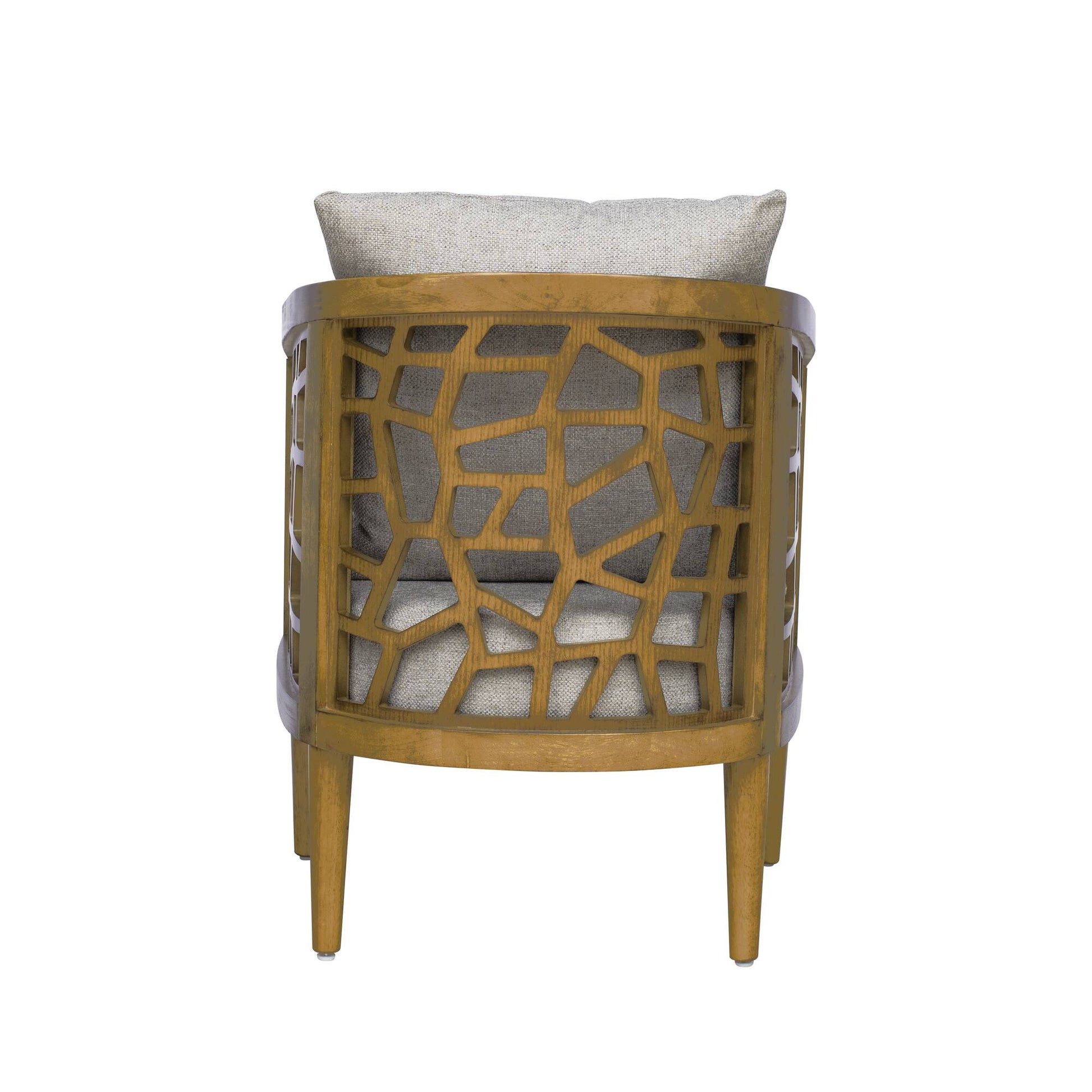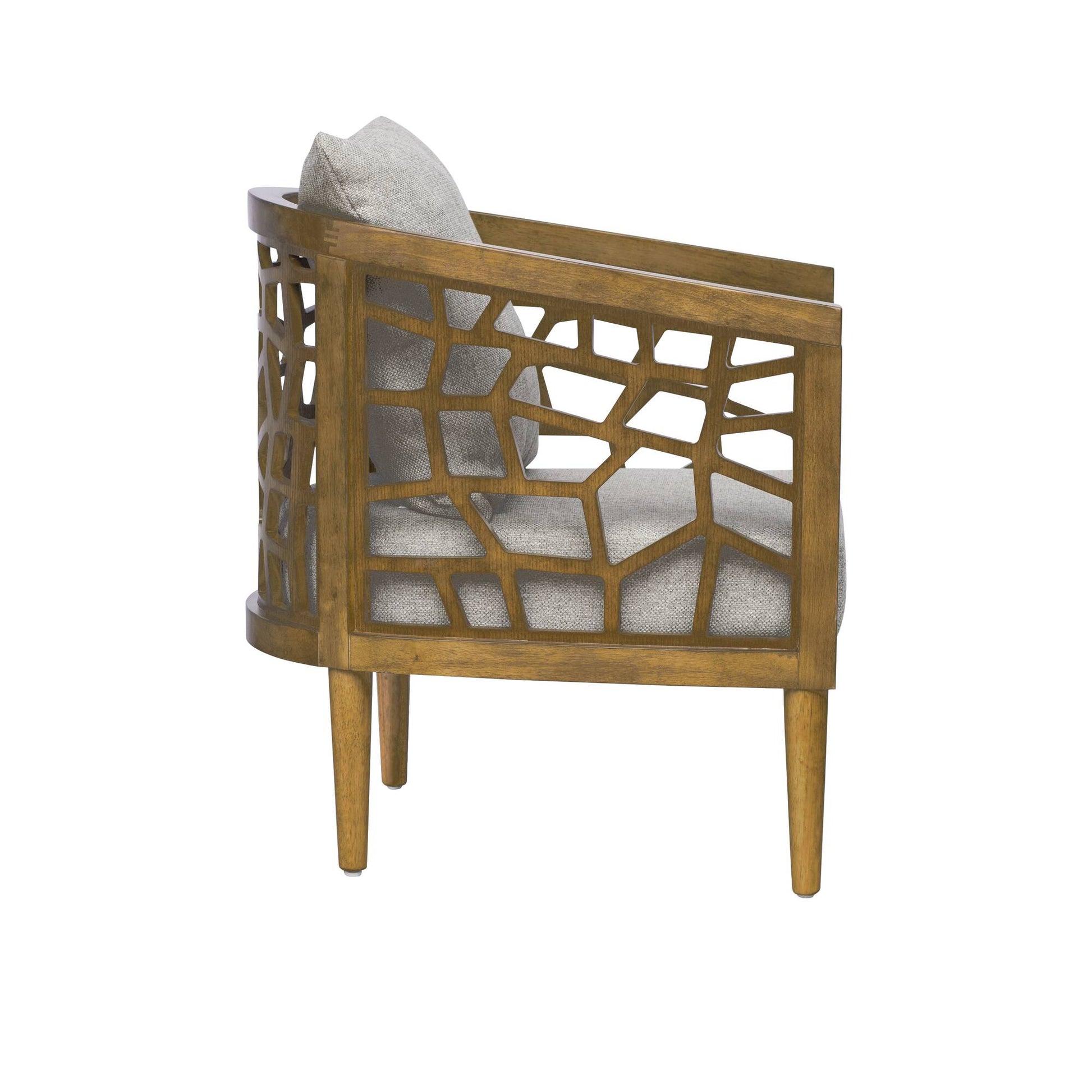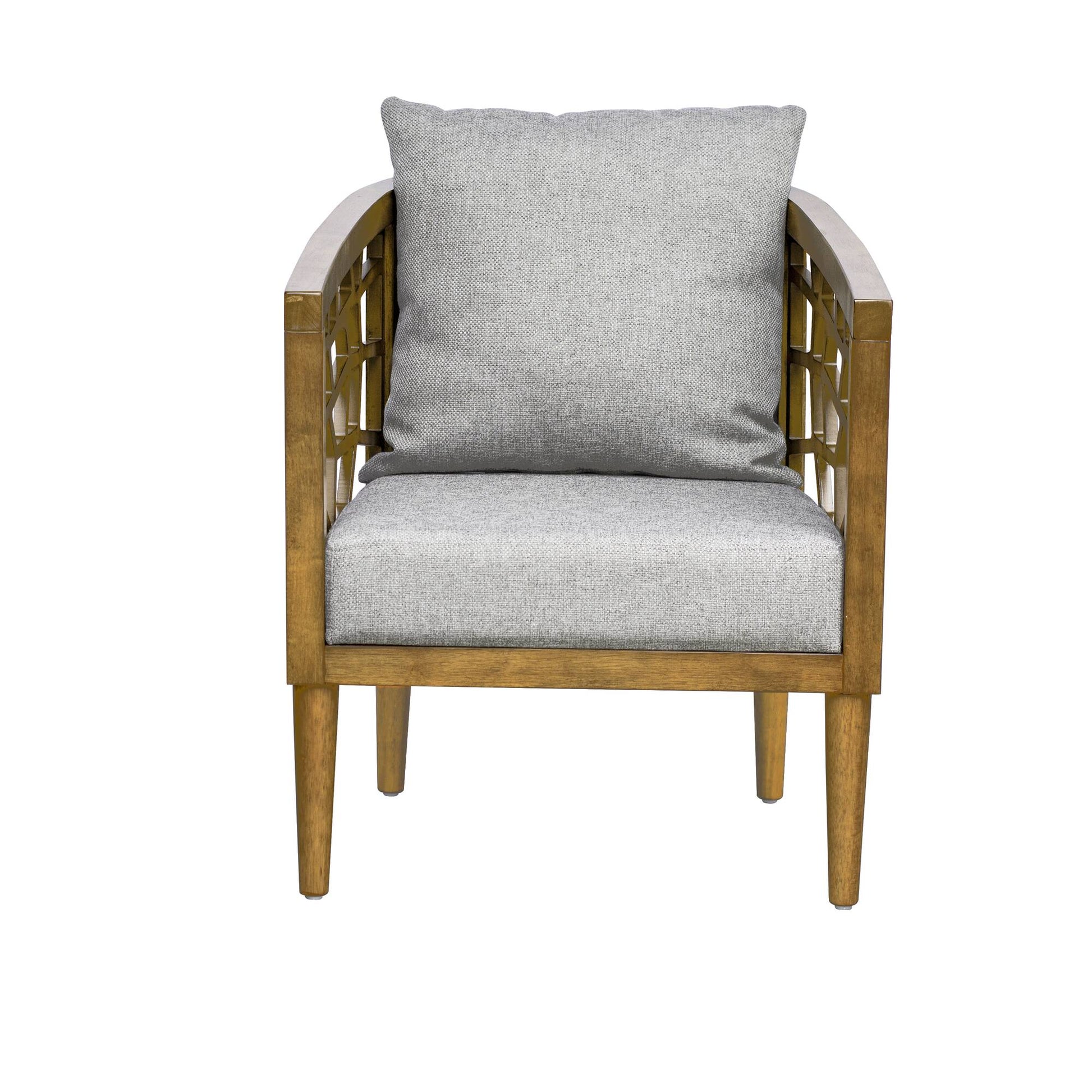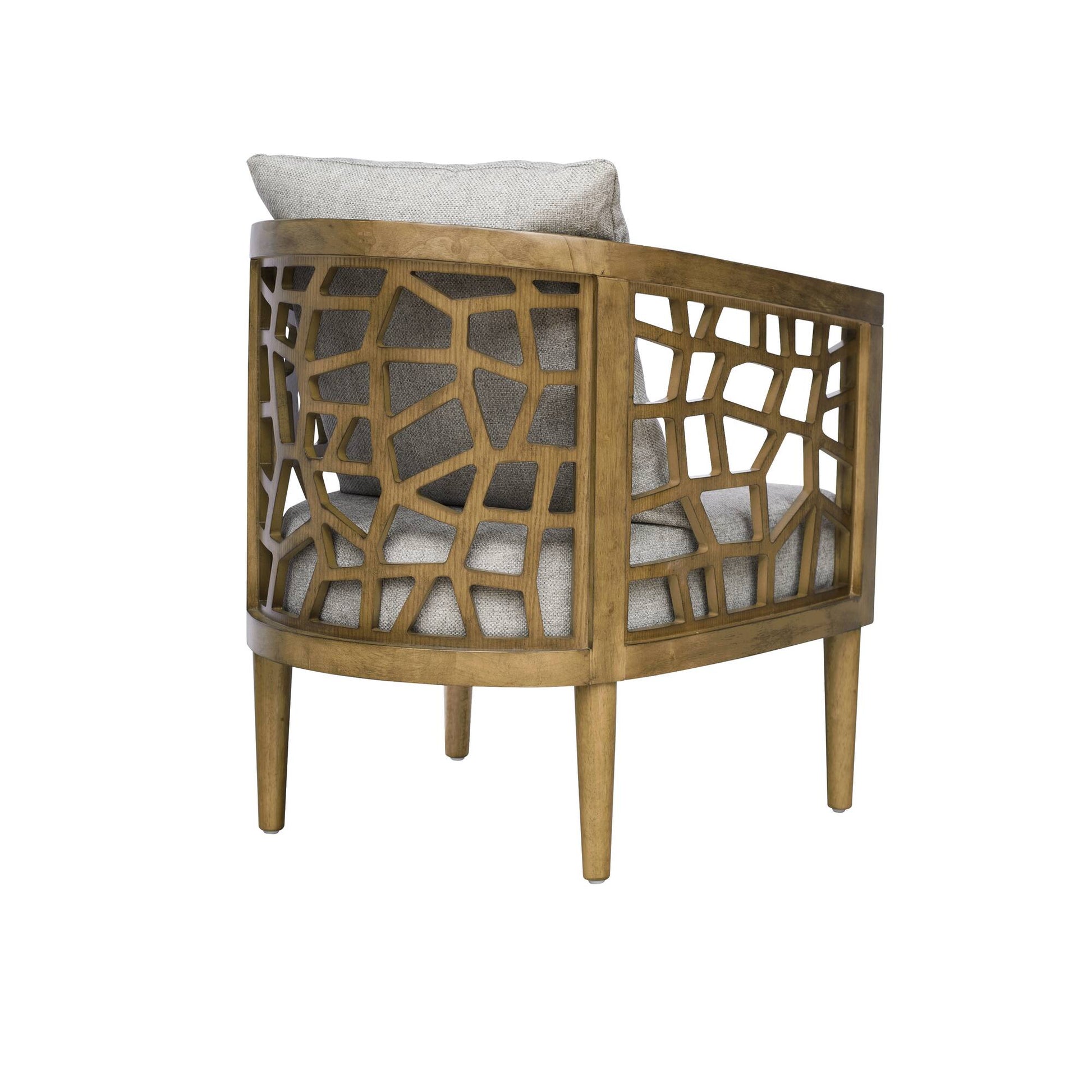 Dress up your decor with mid-century style of the INK+IVY Crackle Accent Chair. Highlighted in a dark burnt walnut finish, this accent chair features natural hued upholstery that creates a stunning contrast.