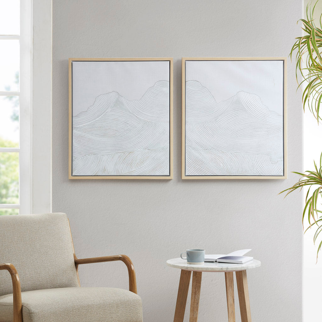 Perfect for more modestly decorated spaces, this INK+IVY Desert Serenity Hand Embellished Abstract 2-piece Framed Canvas Wall Art Set brings a subtle beauty to your home. A layers of delicate textured abstract design and its mirrored counterpart create an understated boho look.