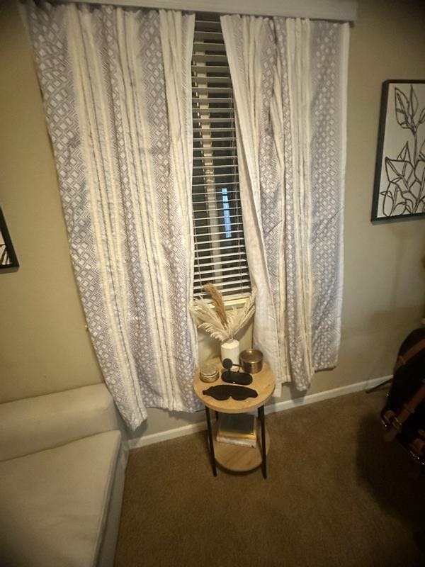 I received the Ink+Ivy white taupe window panels, although I didn’t love the pattern, it’s giving Christmas vibes with the fleece. But the white and taupe compliments my living room. Just need to dress it up with some taupe sheer curtains.