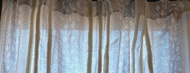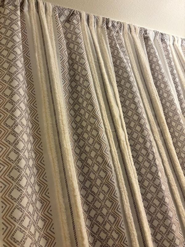 The INK+IVY white and taupe Ebby window panels came in a set of two. The 50x84" length touches the floor perfectly and looks as shown in the image.The geometric print texture design with the white striped lining perfectly spaced out in between gives it a a boho chic feel to the room. I like the feel of the fabric texture and the printed pattern stitching which is done beautifully. I like that there are seven wide panel loops in the back making it easy to change the panels. I like that it has light fitering which allows for privacy while ensuring a balance of sunlight to come through so it's not too gloomy and darkening. I did notice a bit of lint shedding coming from the white striped lining and hopefully that will go away after a wash. I have not washed the window panels yet so I can't speak to if the panel will shrink or if the white striped lining will continue to shed. The length is perfect and the white striped lining is beautiful so hopefully it won't continue shedding or shrink after a wash. I received this product for free for testing purposes.